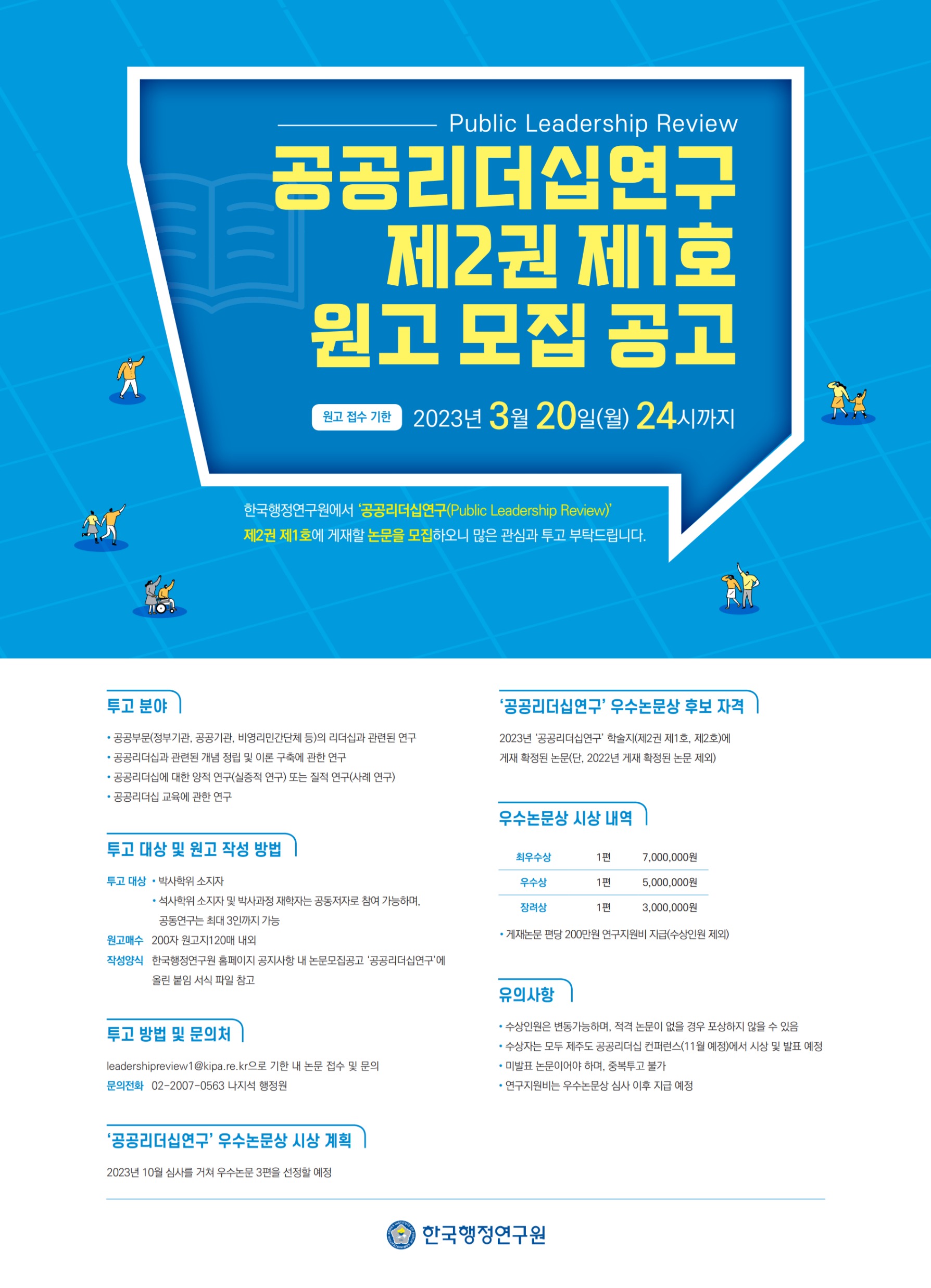 [수정재공고] 공공리더십연구 제2권 제1호 창간호 논문 모집